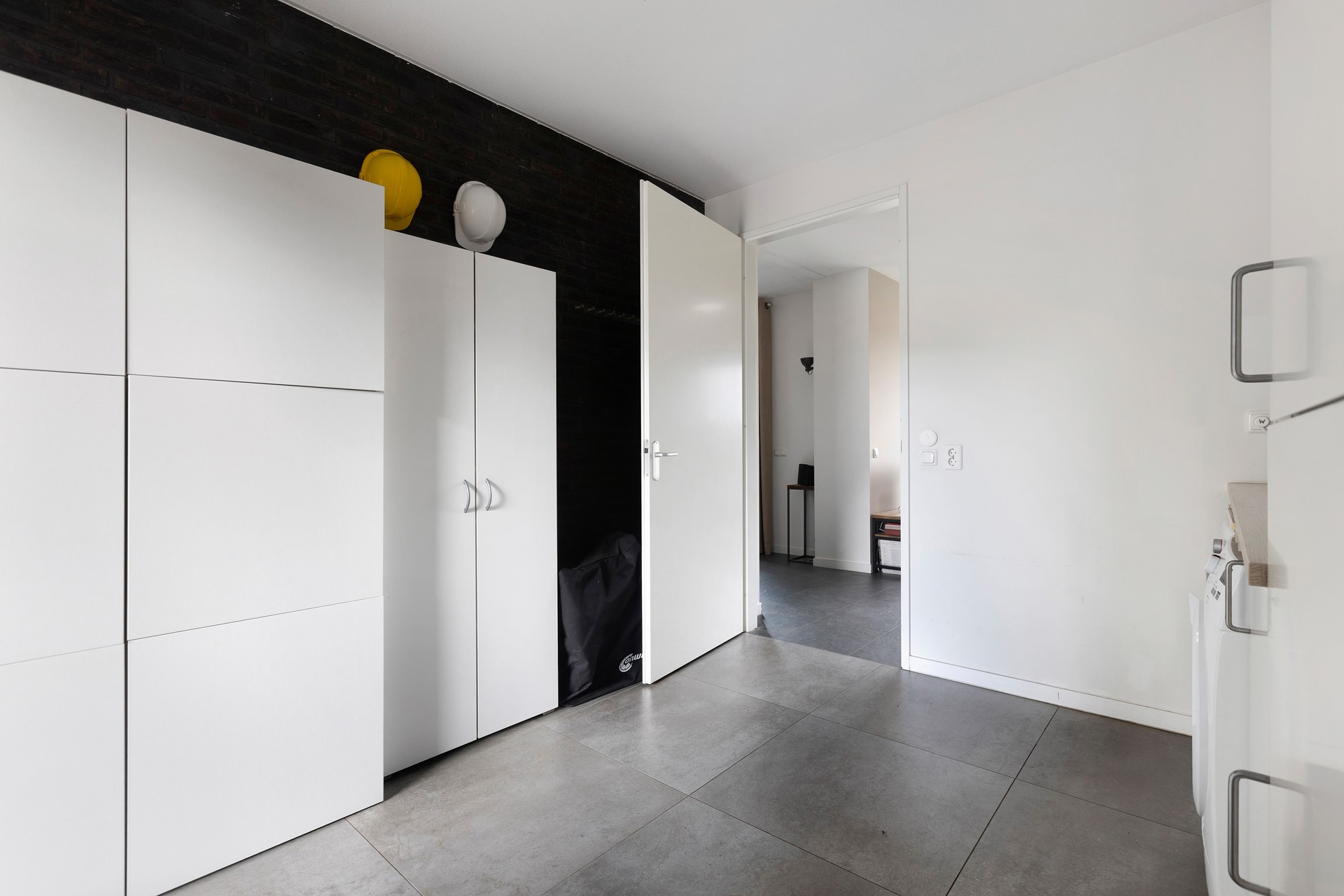 Tevens is er een bijkeuken die extra bergruimte biedt. In de bijkeuken bevindt zich de aansluiting voor de wasapparatuur en een koel-vriescombinatie, wat bijdraagt aan het praktische karakter van de woning. De bijkeuken is via de aparte ruimte binnendoor te bereiken.