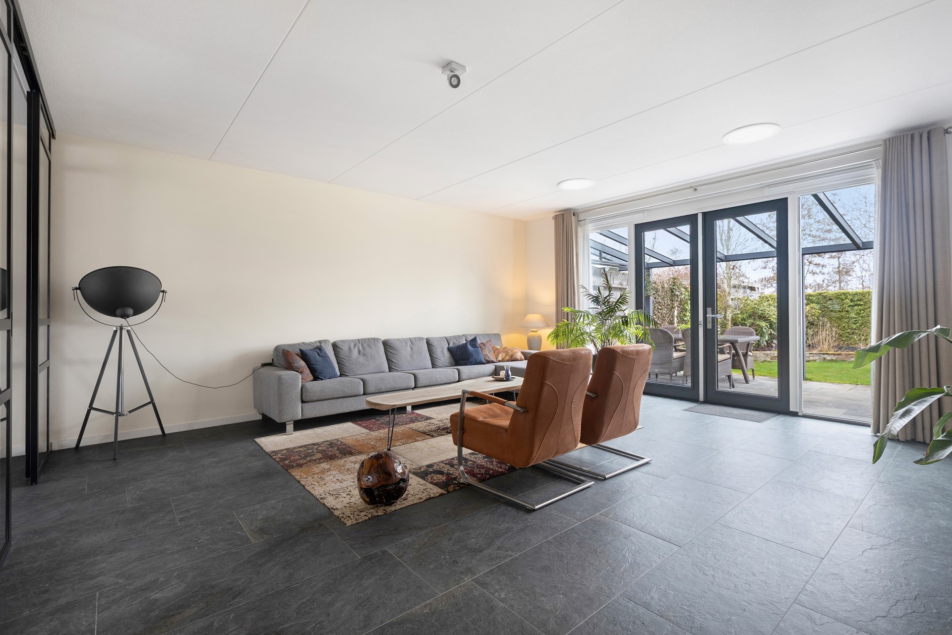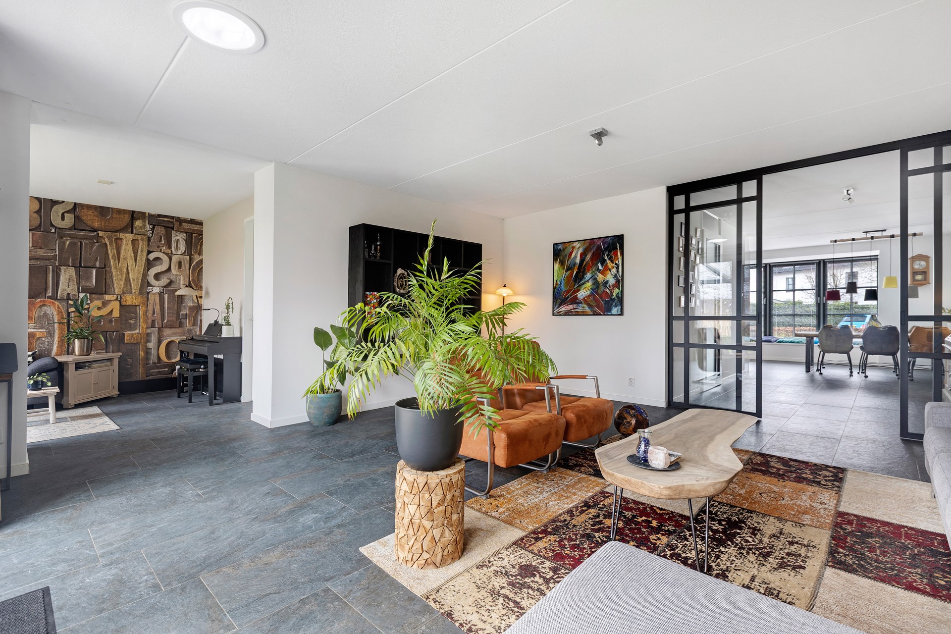 Bij binnenkomst kom je in de hal met meterkast, toiletruimte en toegang tot de leefruimtes. De woonkamer is ruim opgezet en kenmerkt zich door de grote raampartijen die zorgen voor veel natuurlijk licht. Hierdoor ontstaat een warme en uitnodigende sfeer.