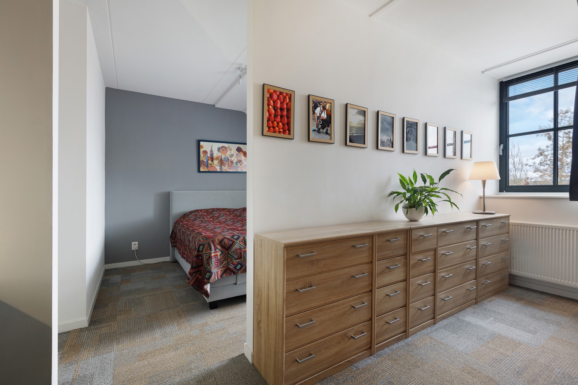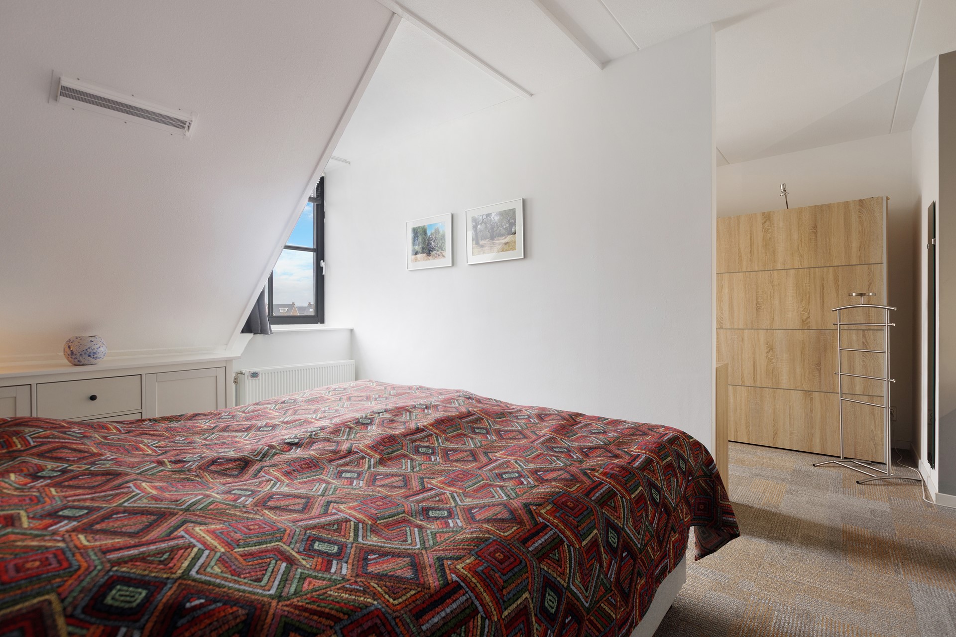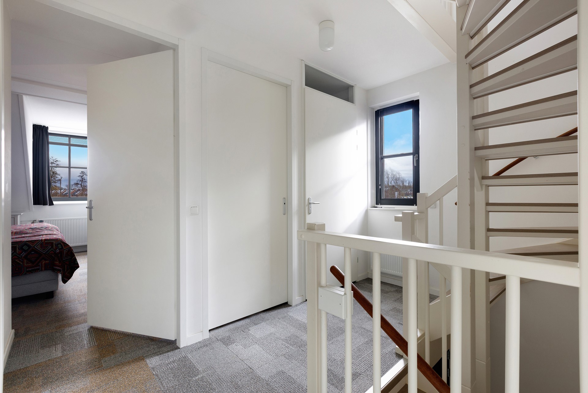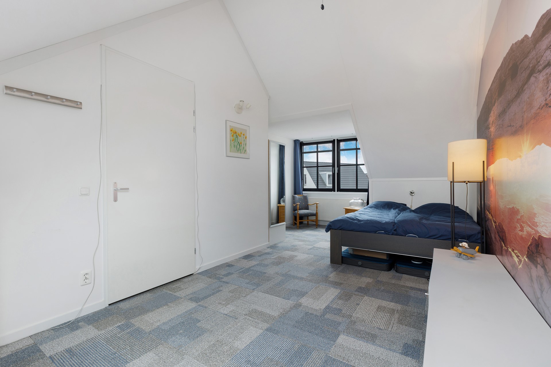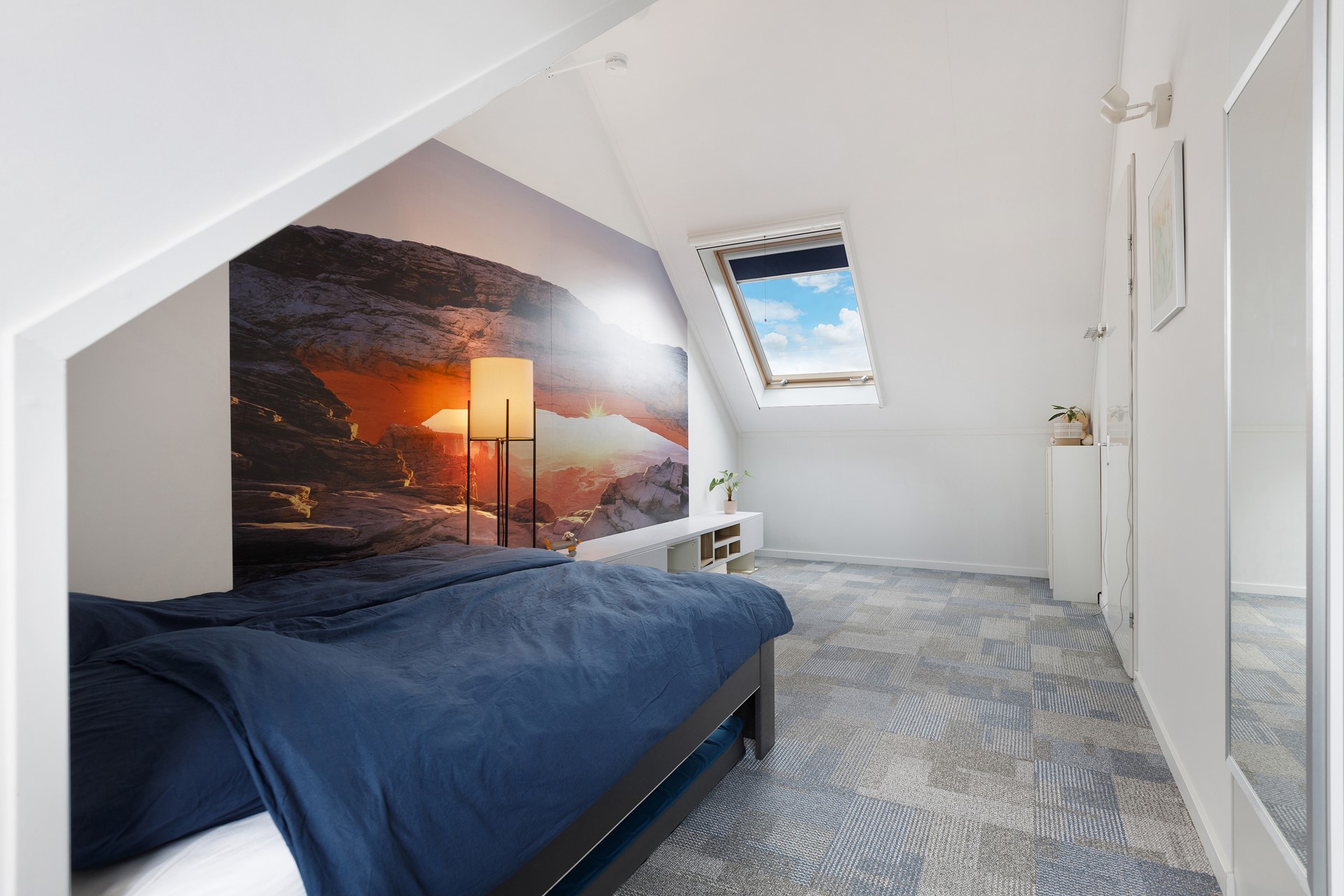 De tweede verdieping biedt ruime mogelijkheden en flexibiliteit. Via de overloop (waar zich de oorspronkelijke wasmachineaansluiting bevindt) bereik je een volwaardige extra slaapkamer, perfect als gastenkamer, thuiskantoor of hobbyruimte. Deze verdieping biedt extra praktische ruimte, waaronder extra bergruimte achter knieschotten.