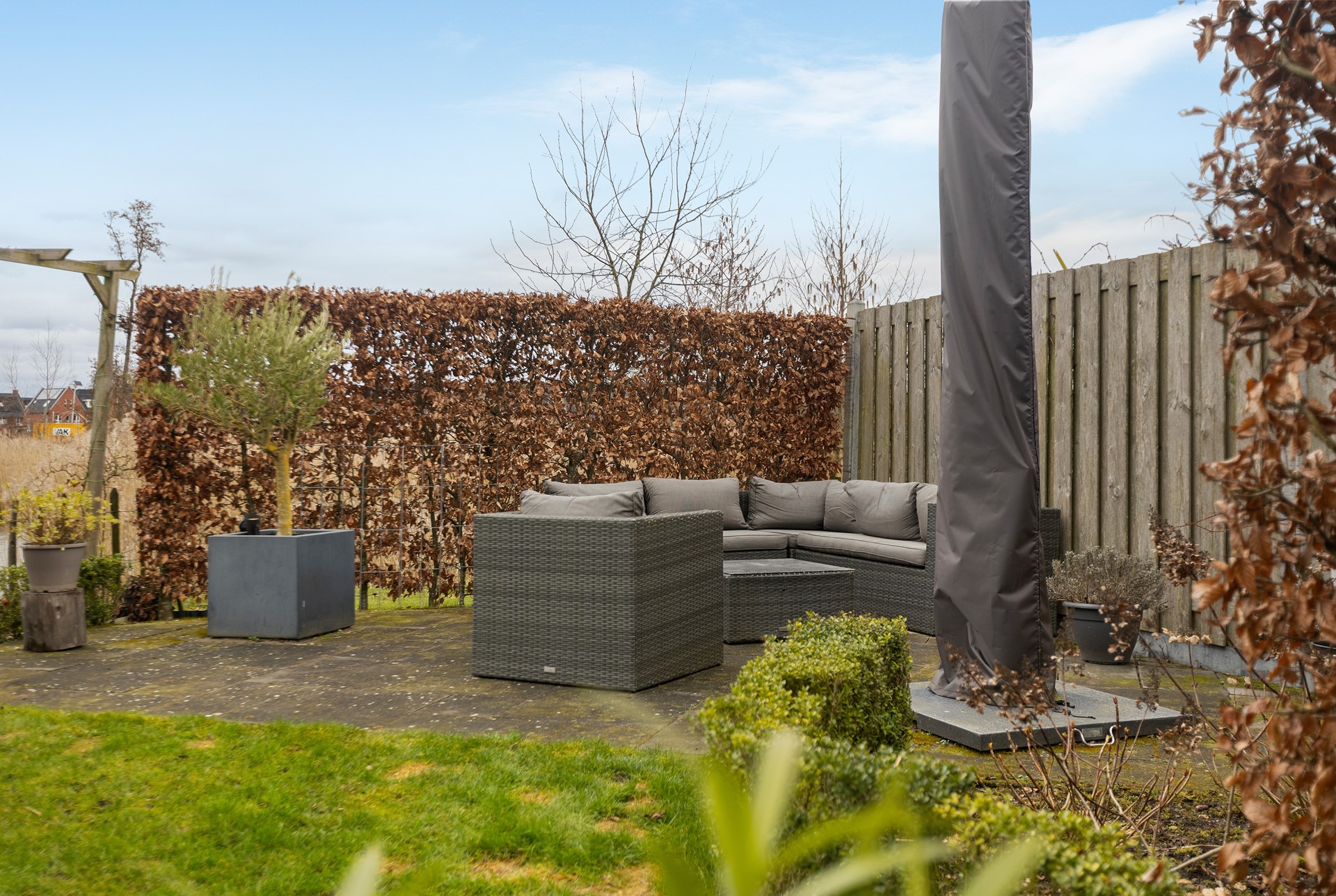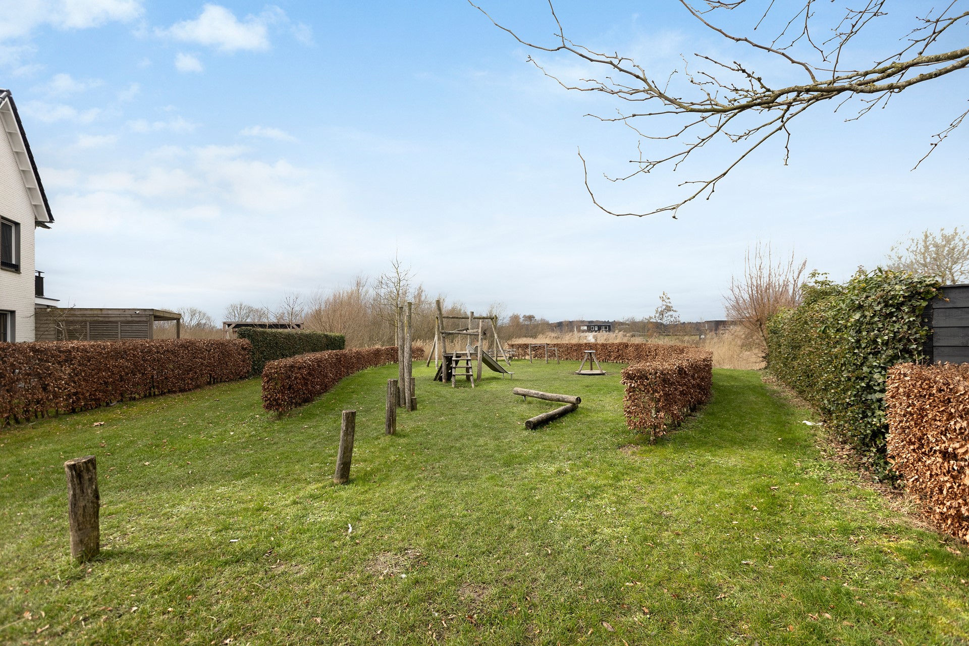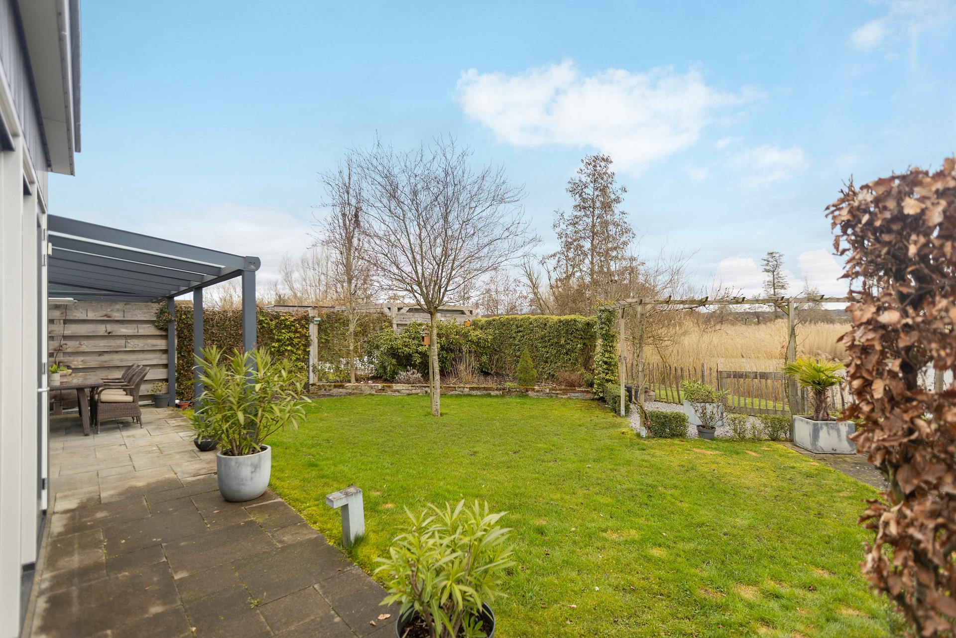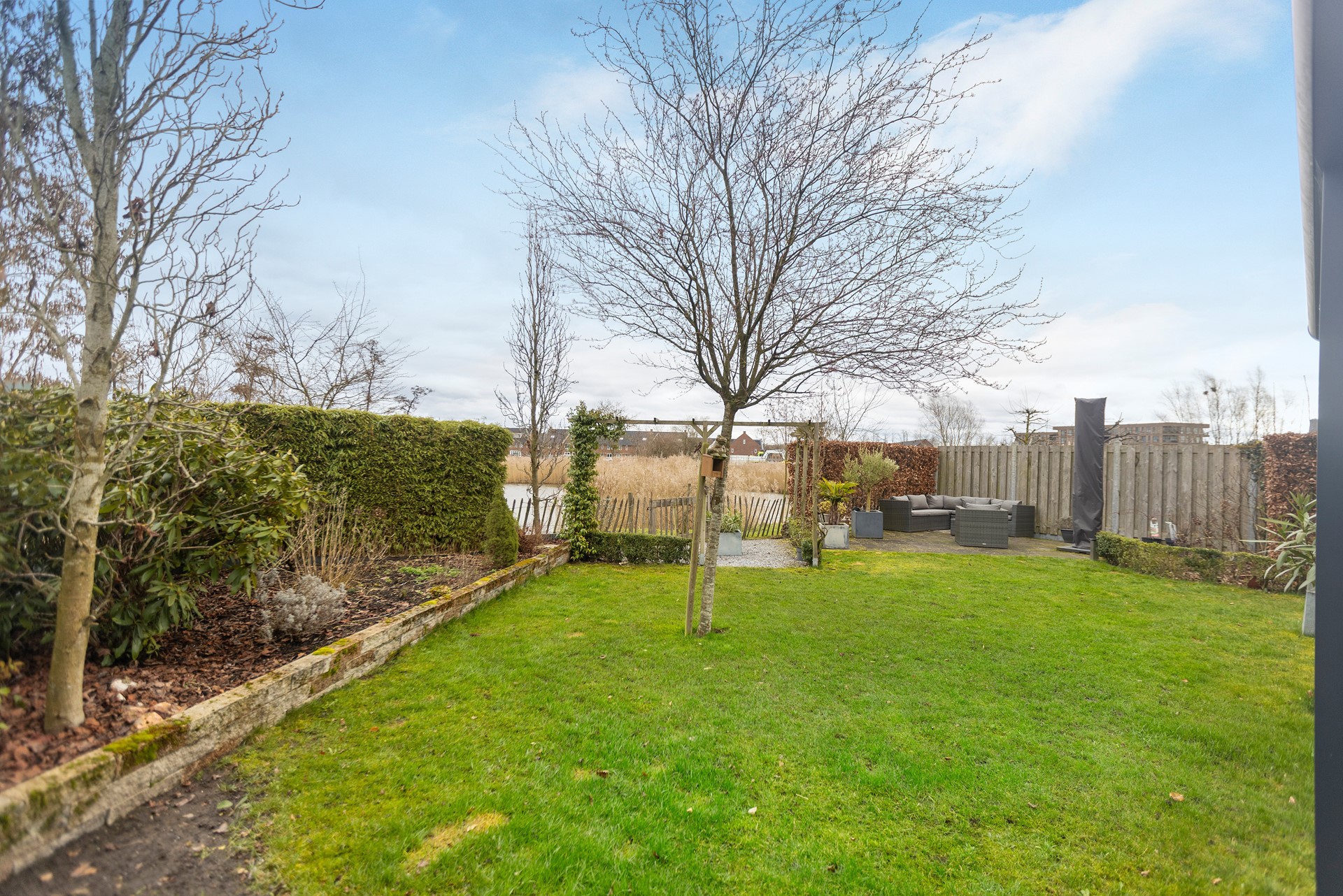 Dankzij de fijne ligging aan een ecologische zone met een prachtige waterpartij, is de tuin een verlengstuk van de woning en een plek waar je het hele jaar door plezier van zult hebben.