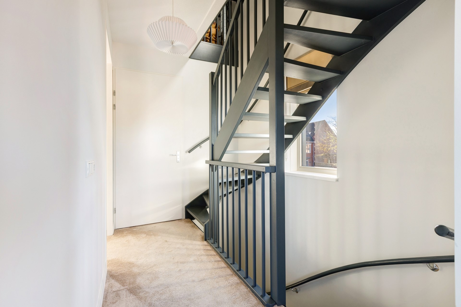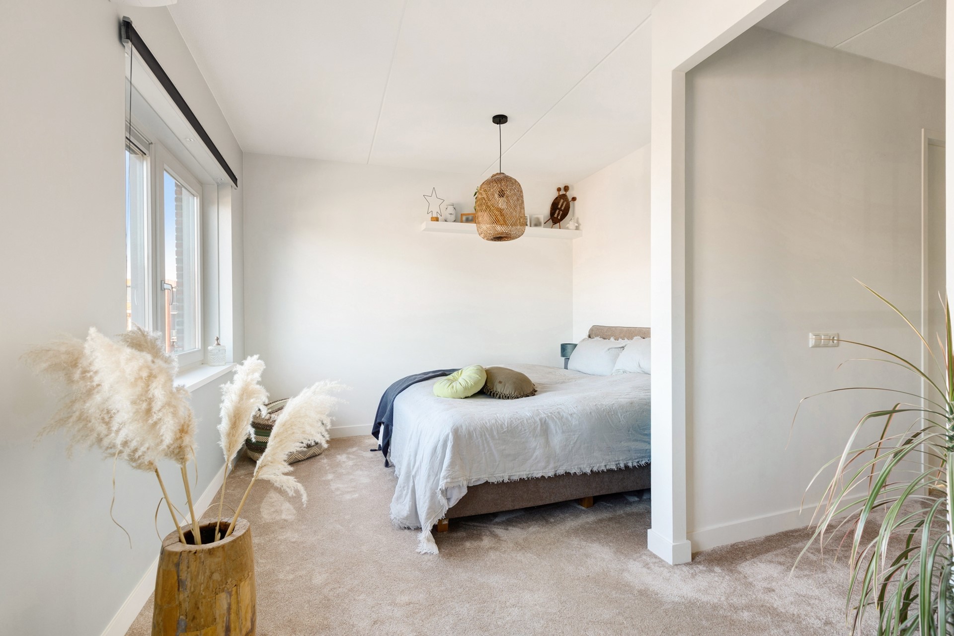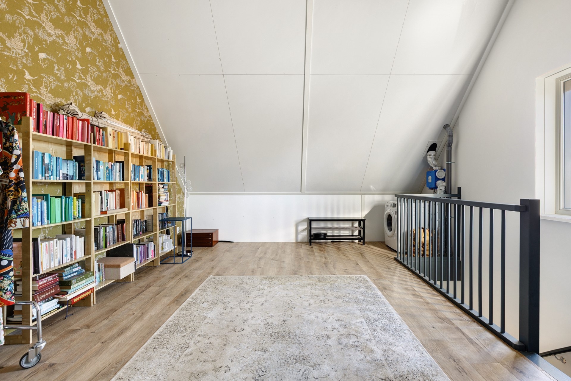 Via de vaste trap kom je op de zeer grote zolder met groot zijraam en een hoge nok. Hier kun je alle kanten op: een extra bergvliering maken, één of twee extra slaapkamers, een mooie werkplek aan huis of een grote hobbyruimte. De twee aanwezige zijramen zijn voorzien van elektrische screens op zonne-energie.