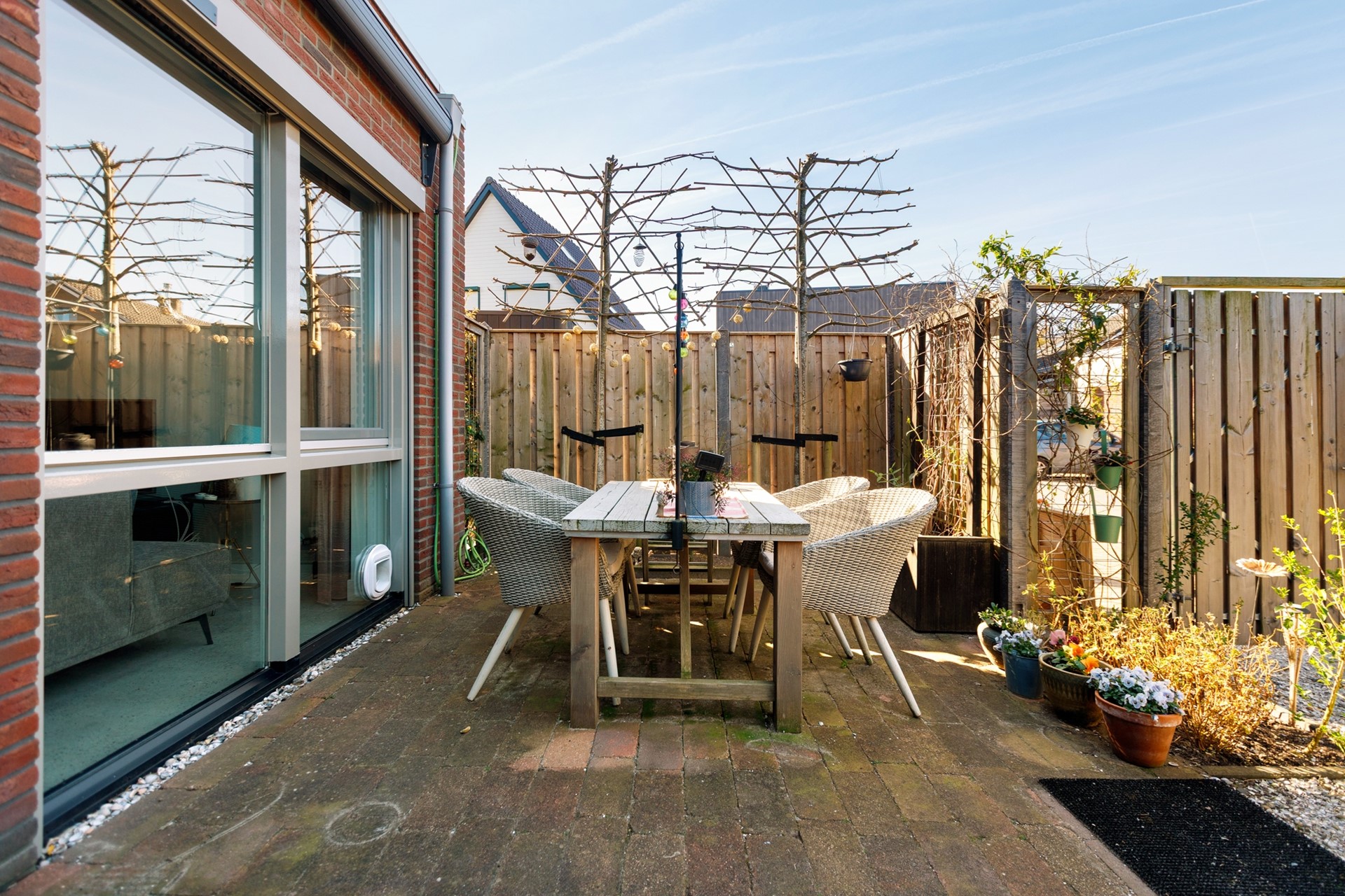 De woning is uitstekend onderhouden. Het buitenschilderwerk is in 2025 uitgevoerd. De muren zijn vanaf de bouw gestukt en in 2025 is de woonkamer opnieuw geschilderd en is er ook een nieuwe vloer gelegd. De netjes aangelegde tuin met overkapping is lekker zonnig en ligt op het westen. Het mandelig terrein met privéparkeerplaatsen naast de woning wordt met drie andere huisnummers gedeeld. De woning is ook bereikbaar via een achterom.
