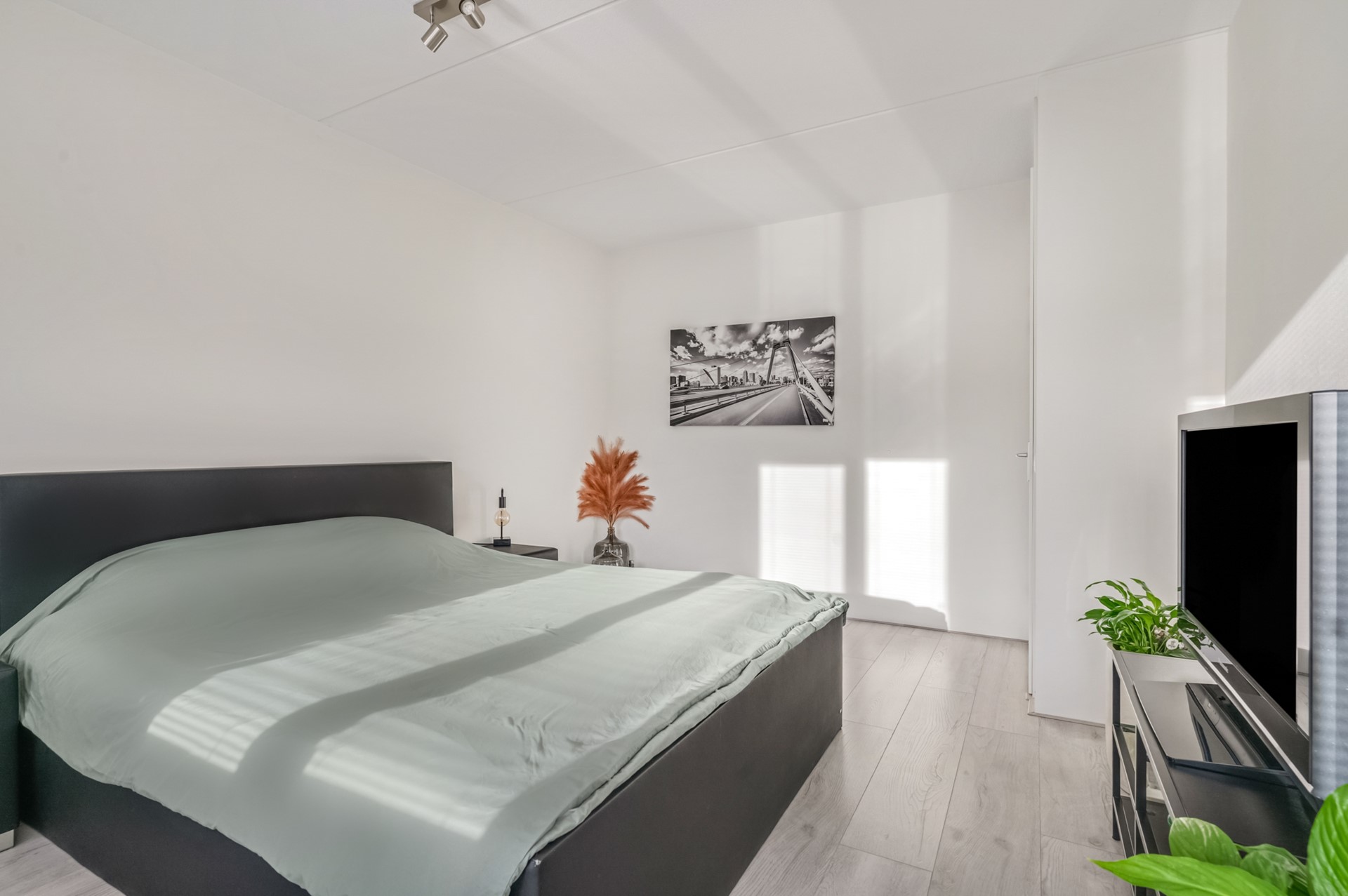Hier bevinden zich twee ruime en lichte slaapkamers. De grootste slaapkamer beschikt over een walk-in closet. De moderne badkamer is compleet uitgevoerd met een douche, ligbad, zwevend toilet en wastafelmeubel.