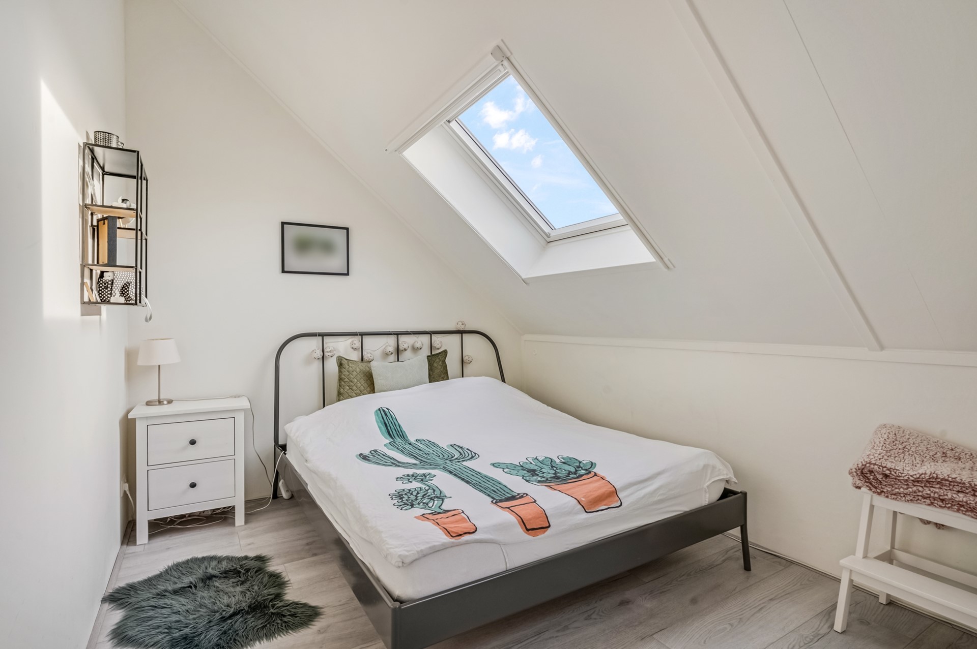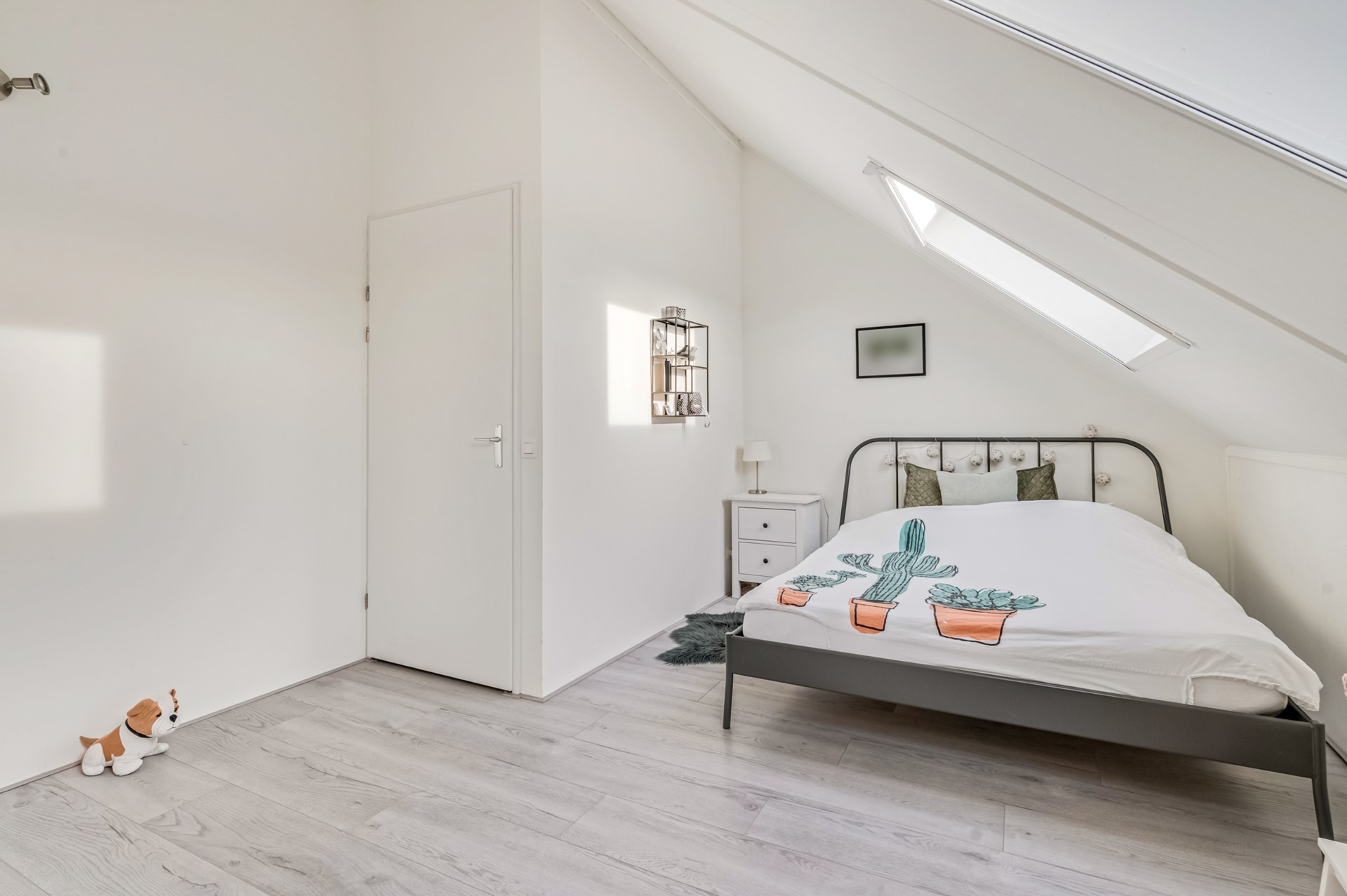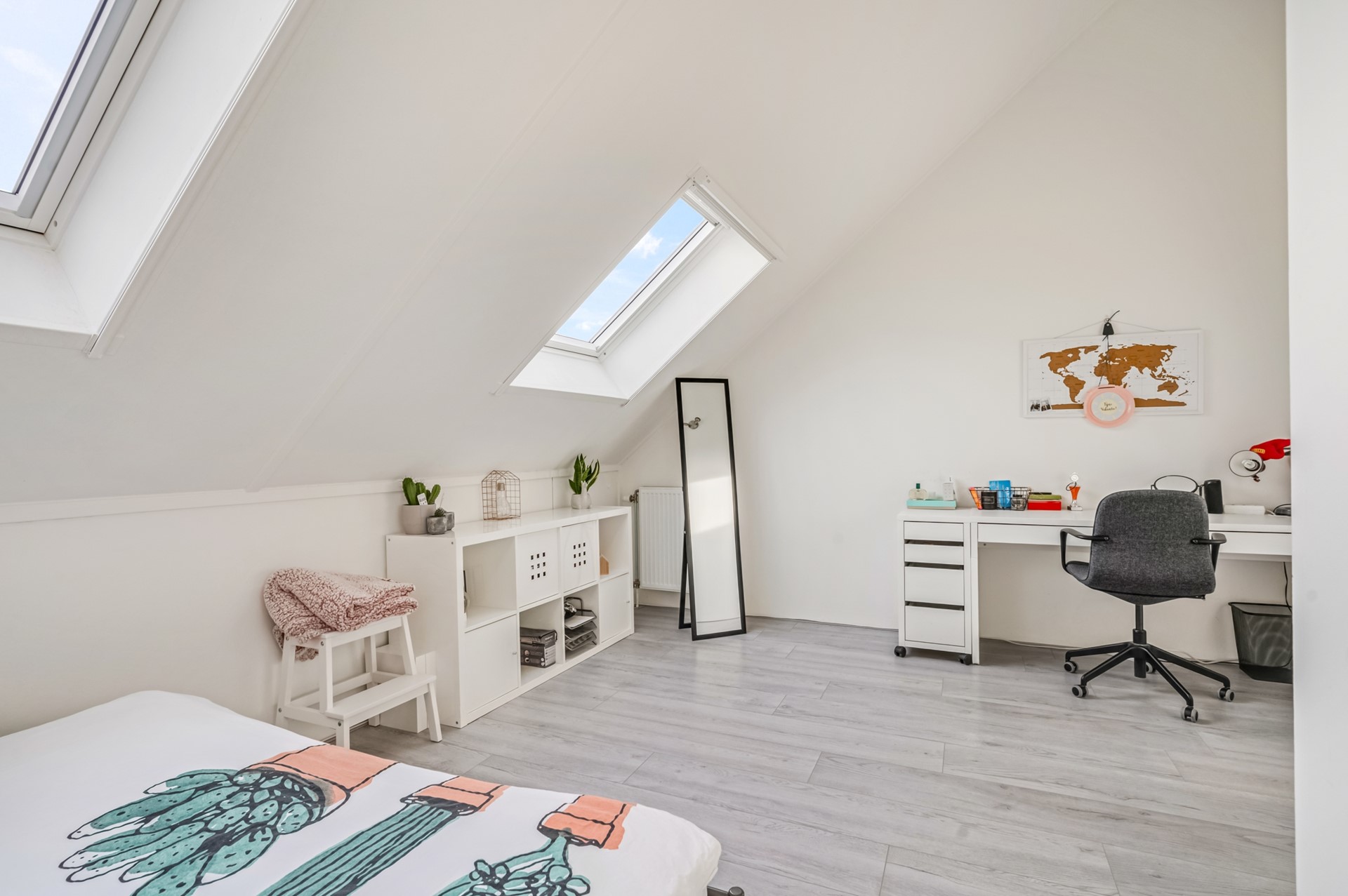 Via een vaste trap bereik je de tweede verdieping, waar nog eens twee slaapkamers zijn gerealiseerd. Daarnaast is er een aparte ruimte met de wasmachine- en drogeraansluiting, praktisch en netjes uit het zicht.