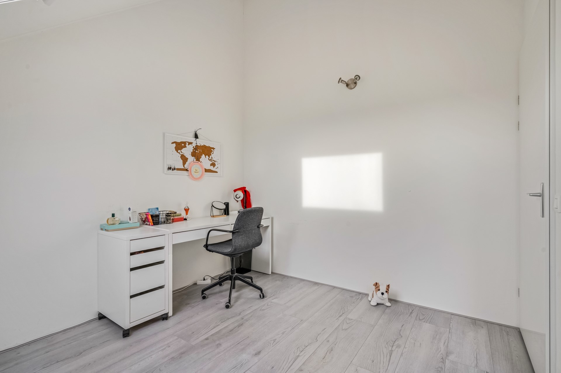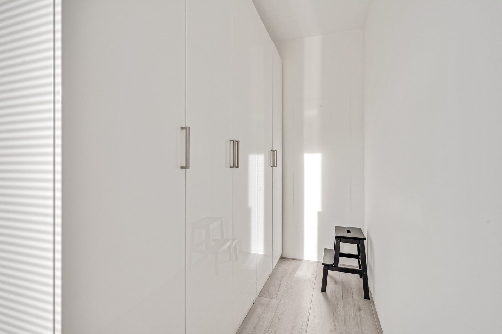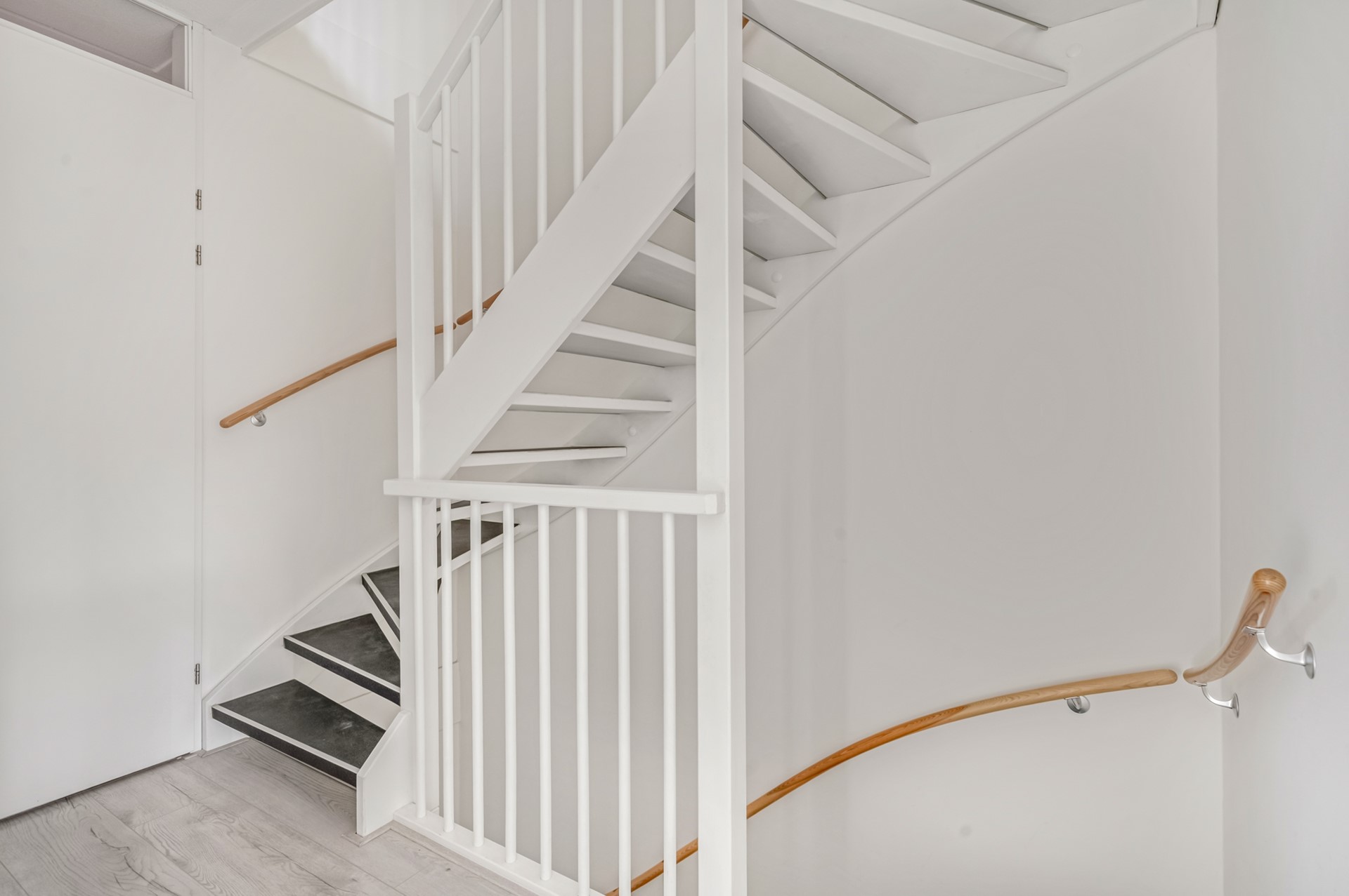 Via een vaste trap bereik je de tweede verdieping, waar nog eens twee slaapkamers zijn gerealiseerd. Daarnaast is er een aparte ruimte met de wasmachine- en drogeraansluiting, praktisch en netjes uit het zicht.