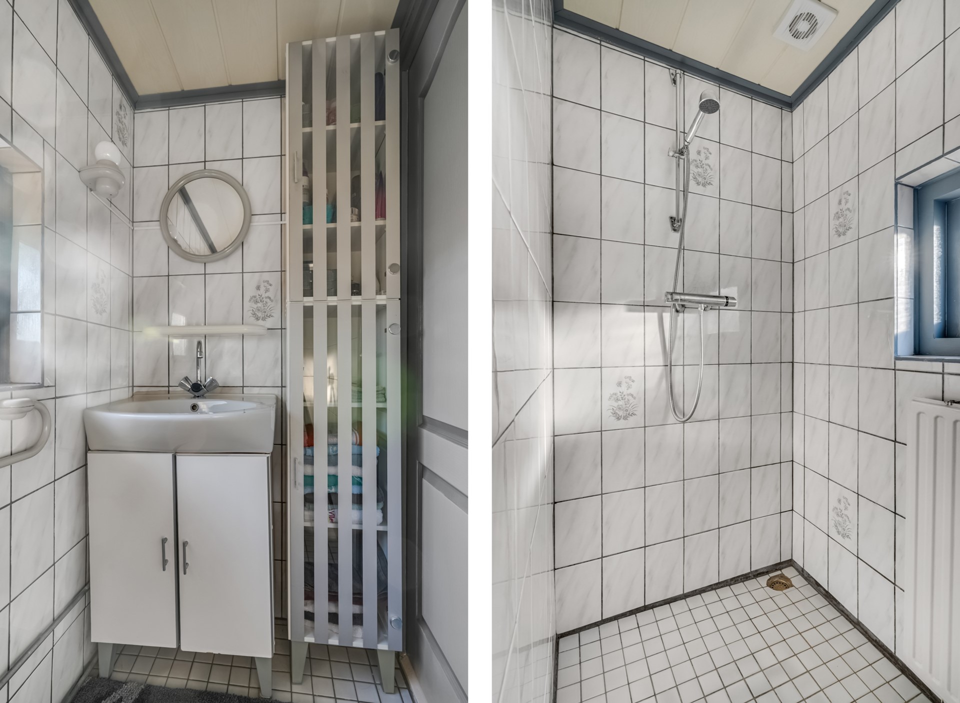 Op deze verdieping bevinden zich 3 slaapkamers, respectievelijk groot ca 3.10 x 3.60, 2.70 x 2.60 en 3.70 x 2.95 meter. Daarnaast zit op deze verdieping de badkamer met douche en wastafel.