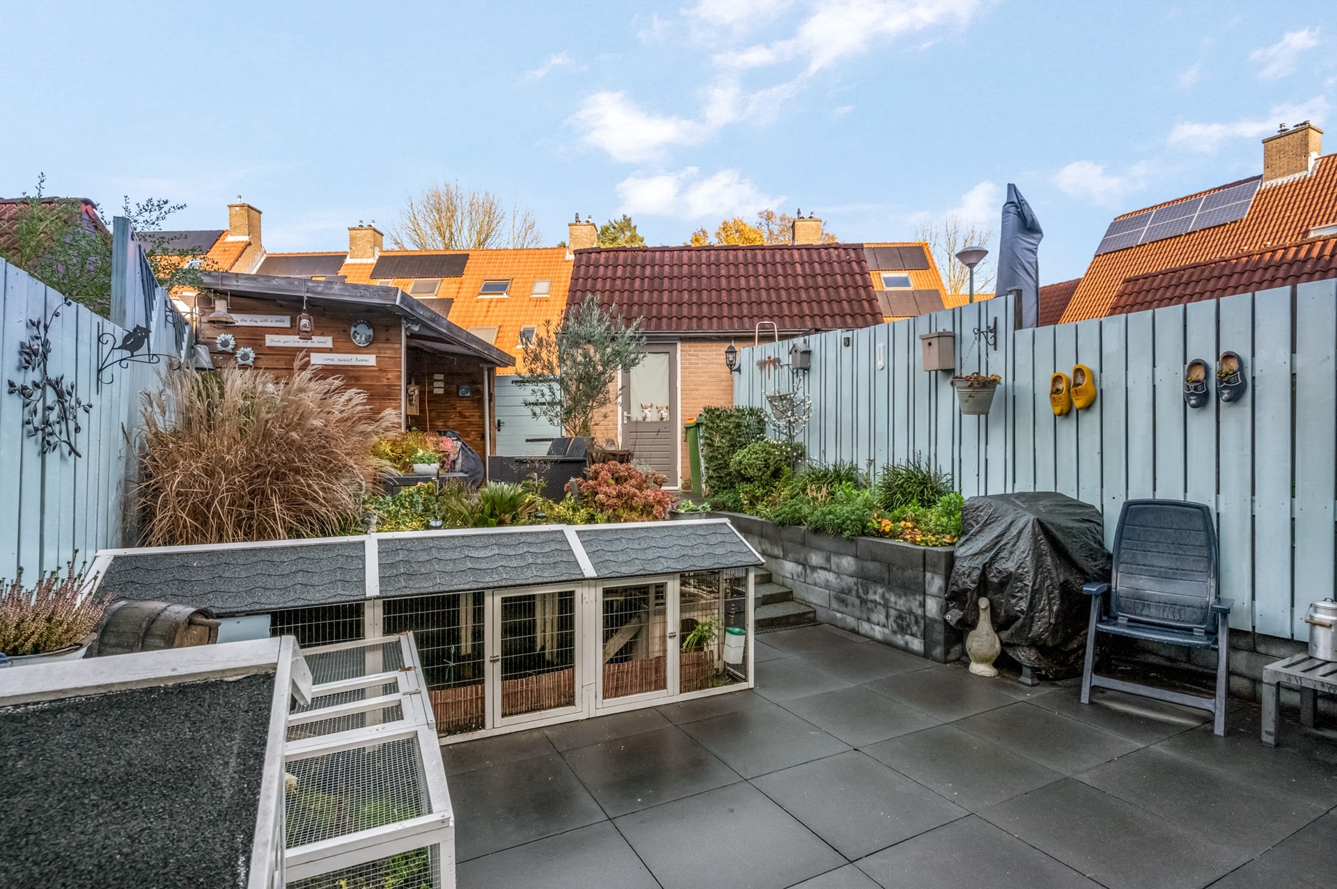 dichtbij te kunnen parkeren. De onderhoudsarme tuin is voorzien van een buitenkraan, meerdere stopcontacten, een overkapping voor fietsen en een riante